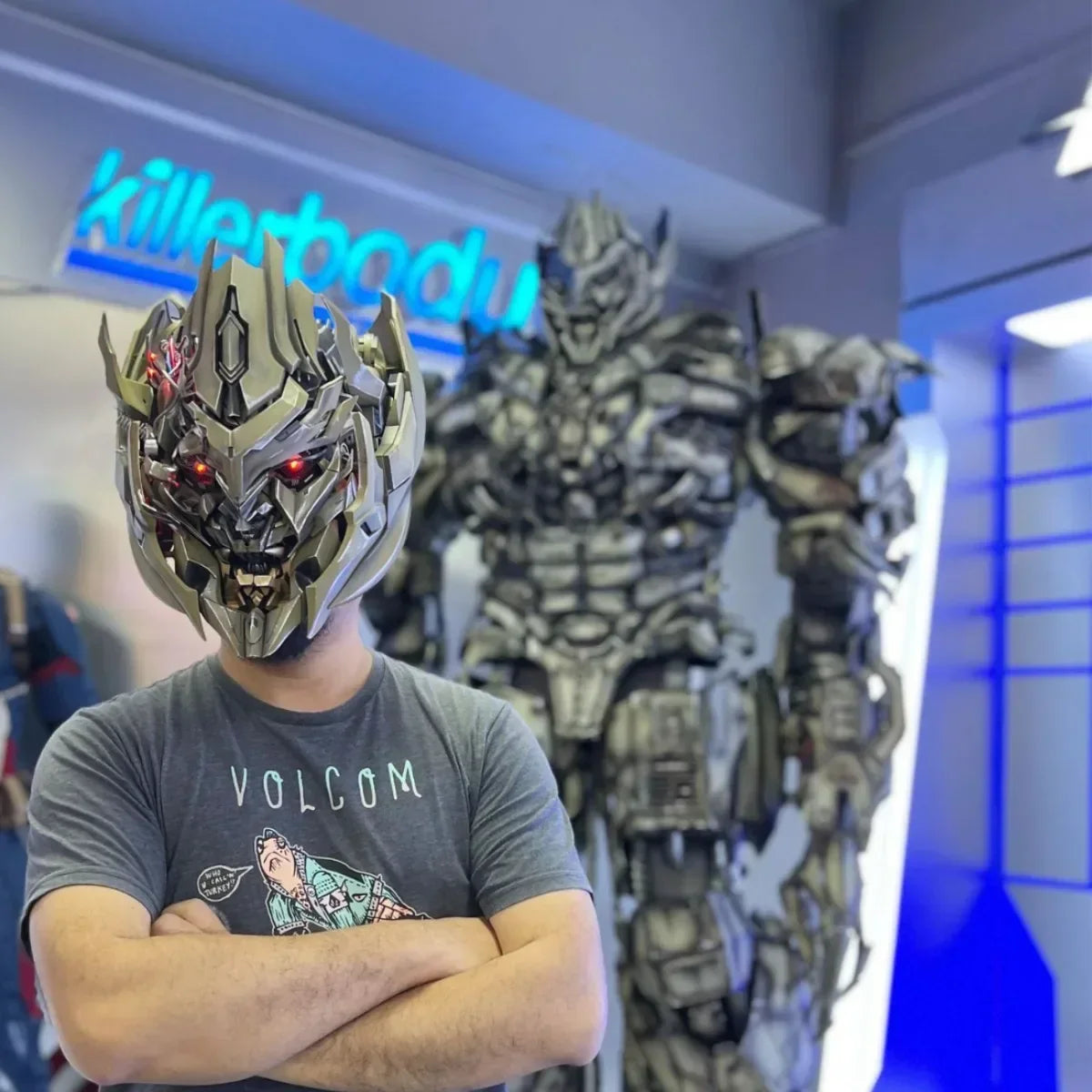 Shop the Megatron | Bumblebee Transformers Voice Control Cosplay Helmet - the ultimate wearable collectible that brings the legendary Transformers to life with voice-activated features and authentic design. This top-rated cosplay helmet features LED lights, voice modulation, and premium construction that makes you feel like you stepped right out of Cybertron.